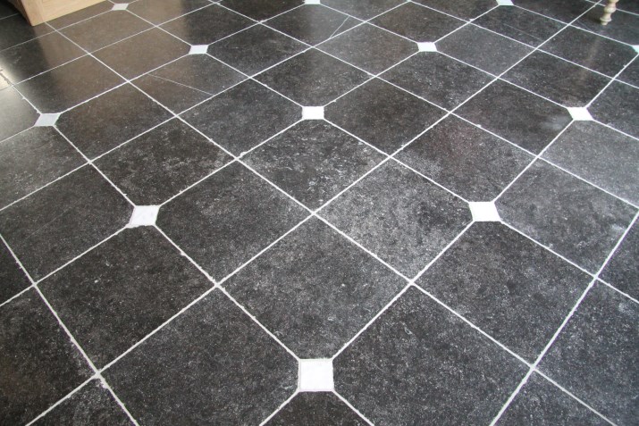 Nadien worden deze tegels verouderd en geborsteld onder druk met harde en zachte borstels en water.