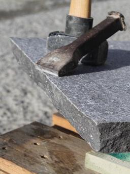 Gevlamd en geborsteld oppervlakte, conisch gekloven zijkanten. 30x30cm